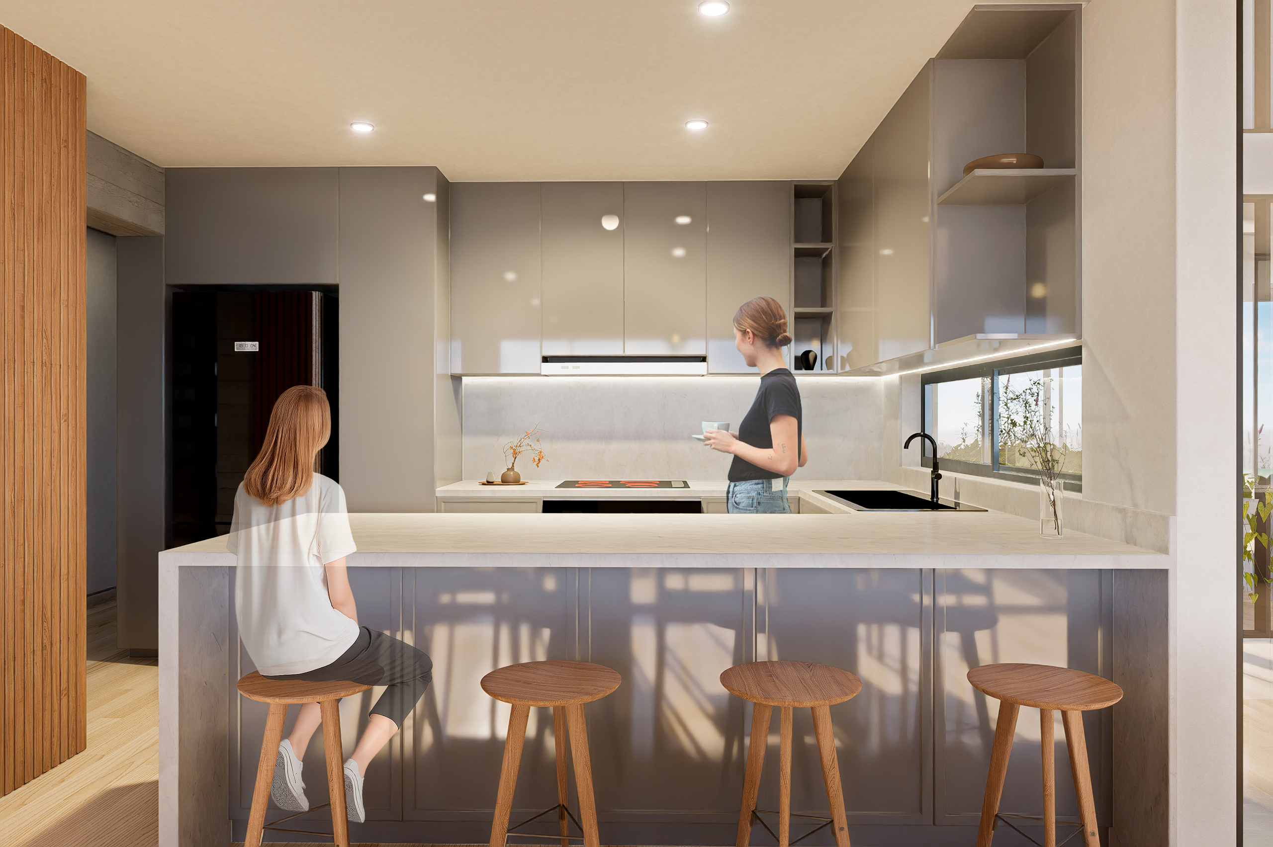 La nueva sede de BioRitmo en La Molina está diseñada para un sector específico. Se creó un espacio vibrante y luminoso, enfocado en sofisticación y calidad, con imágenes fotorealistas que atraen a compradores y clientes.
